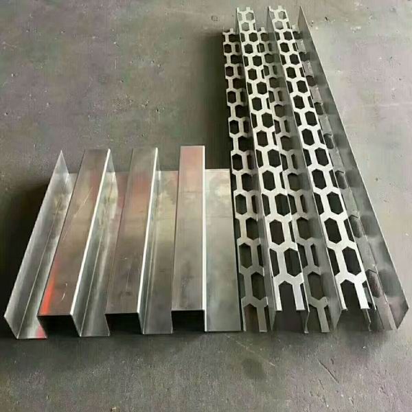 孔規(guī)格:長60mm*寬25mm,整體板面呈凹凸長城型90°彎折,長城凹凸均為64.5mm,單塊整板見光面約寬523mm*長1995mm,其他規(guī)格也可根據(jù)要求定制生產(chǎn)。