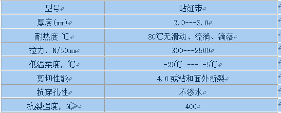 壓縫帶(自粘壓縫帶)性能指標及規(guī)格: